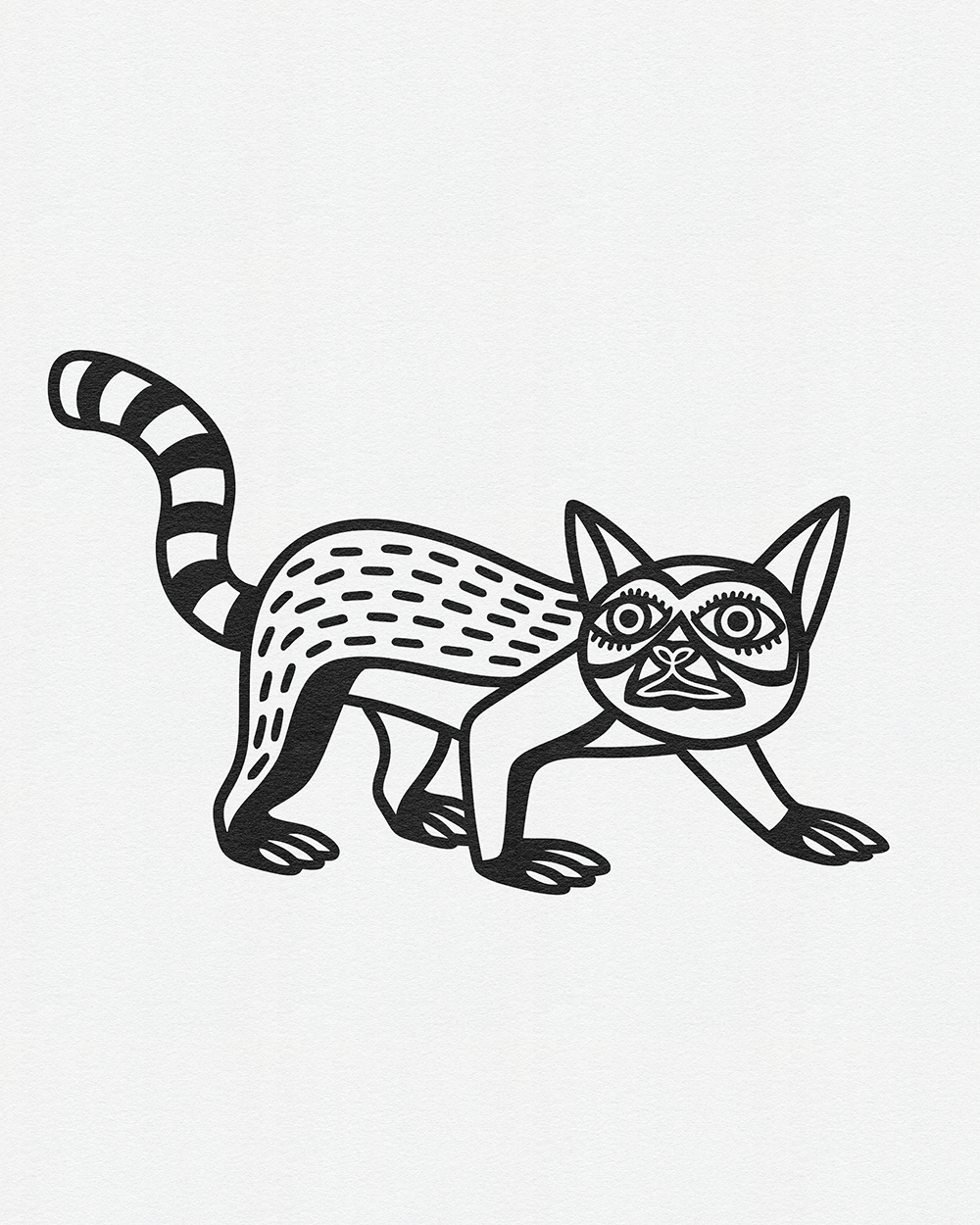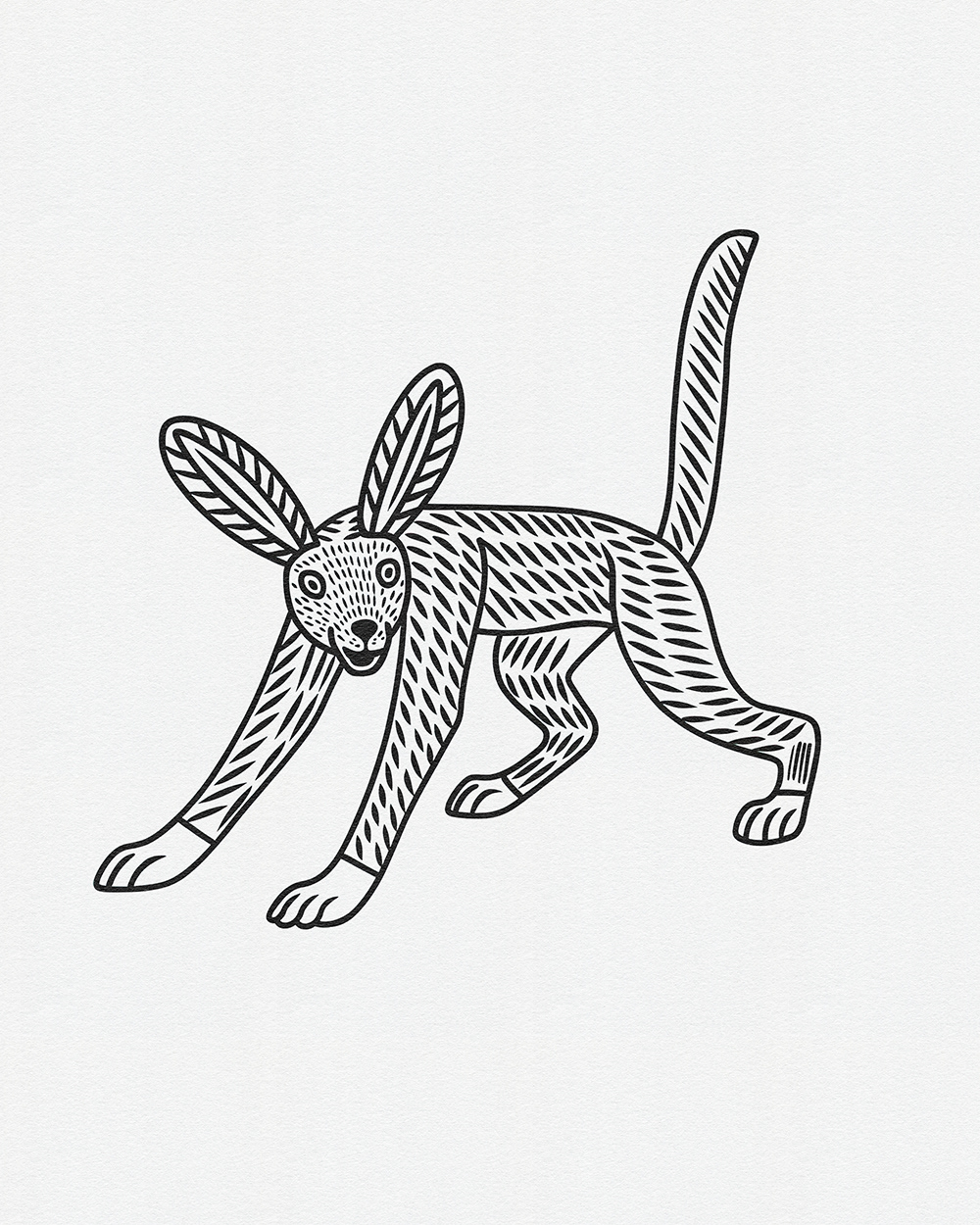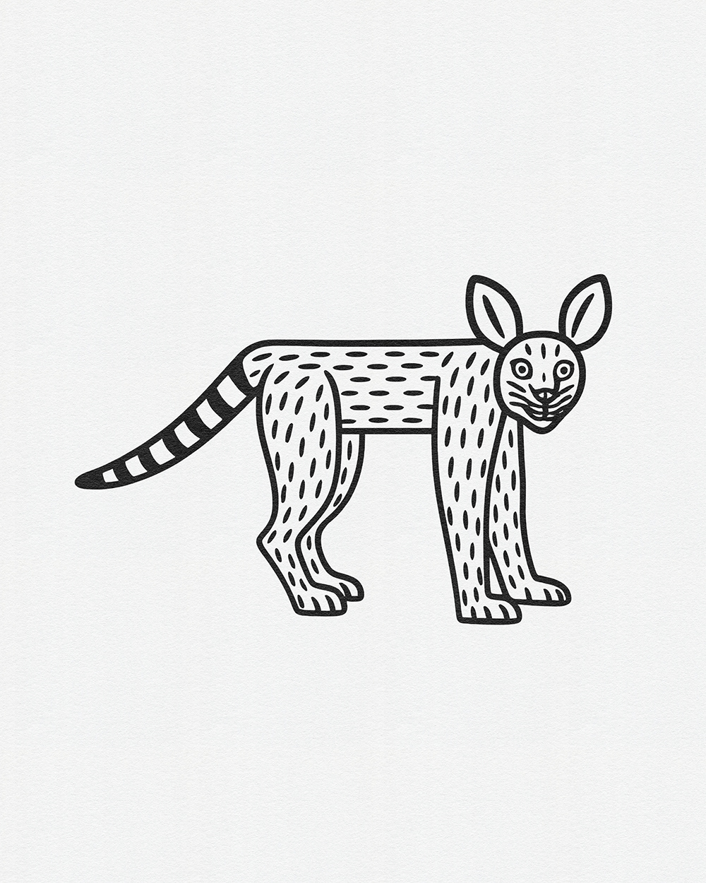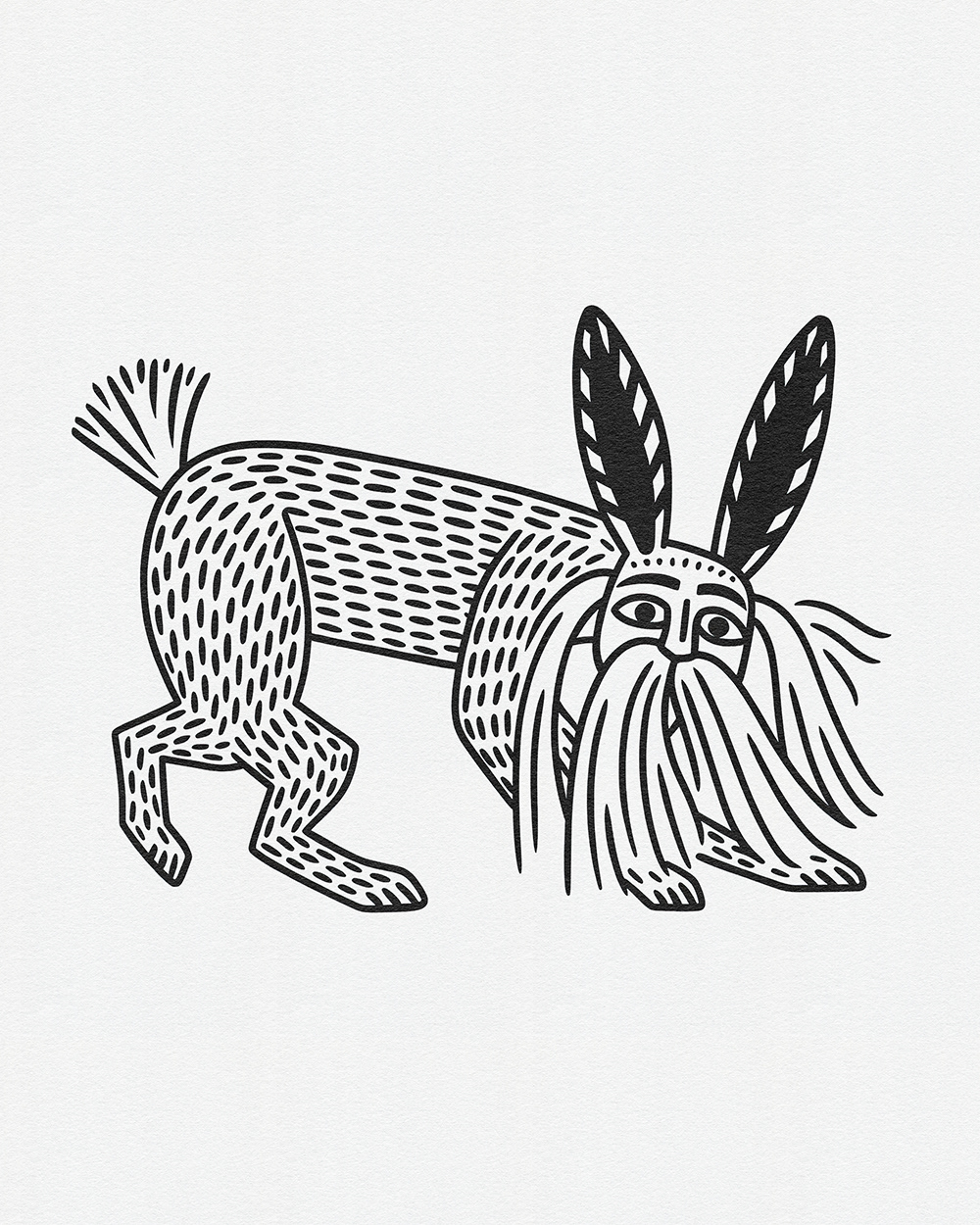 Whimsical Beasts: Bold Black and White Folk-Inspired Animal Illustrations