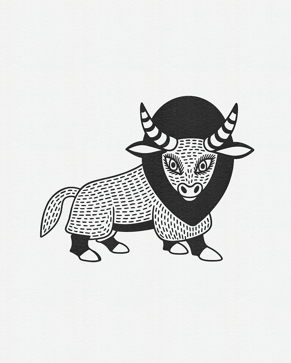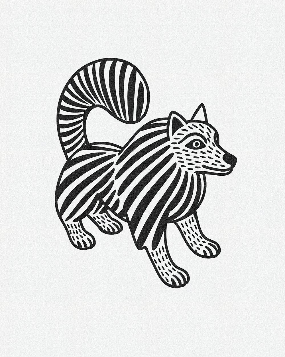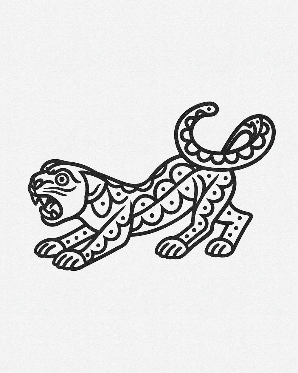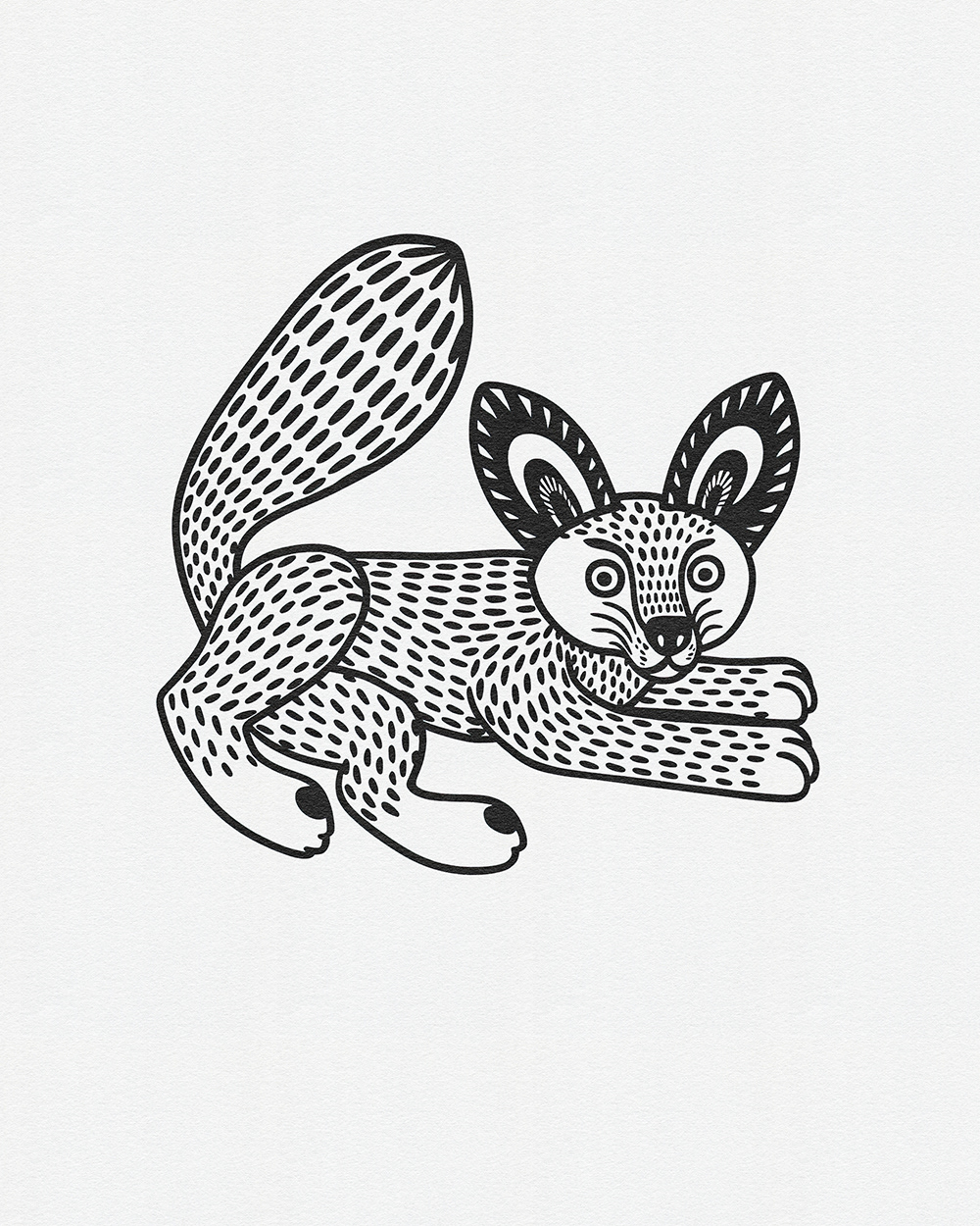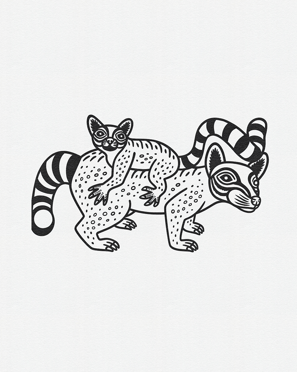 Whimsical Beasts: Bold Black and White Folk-Inspired Animal Illustrations
