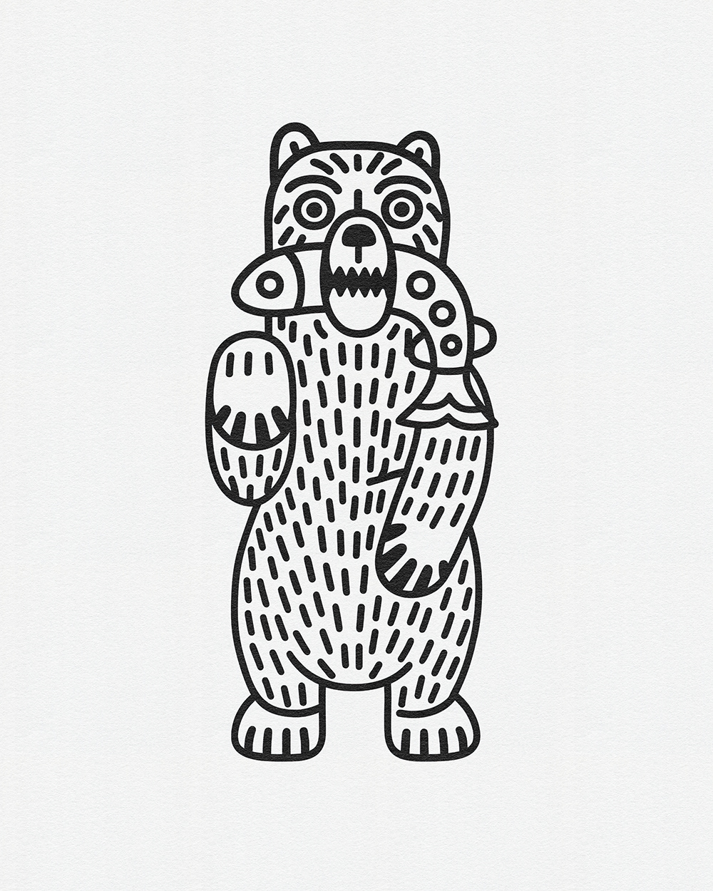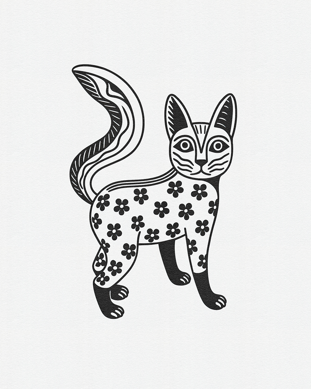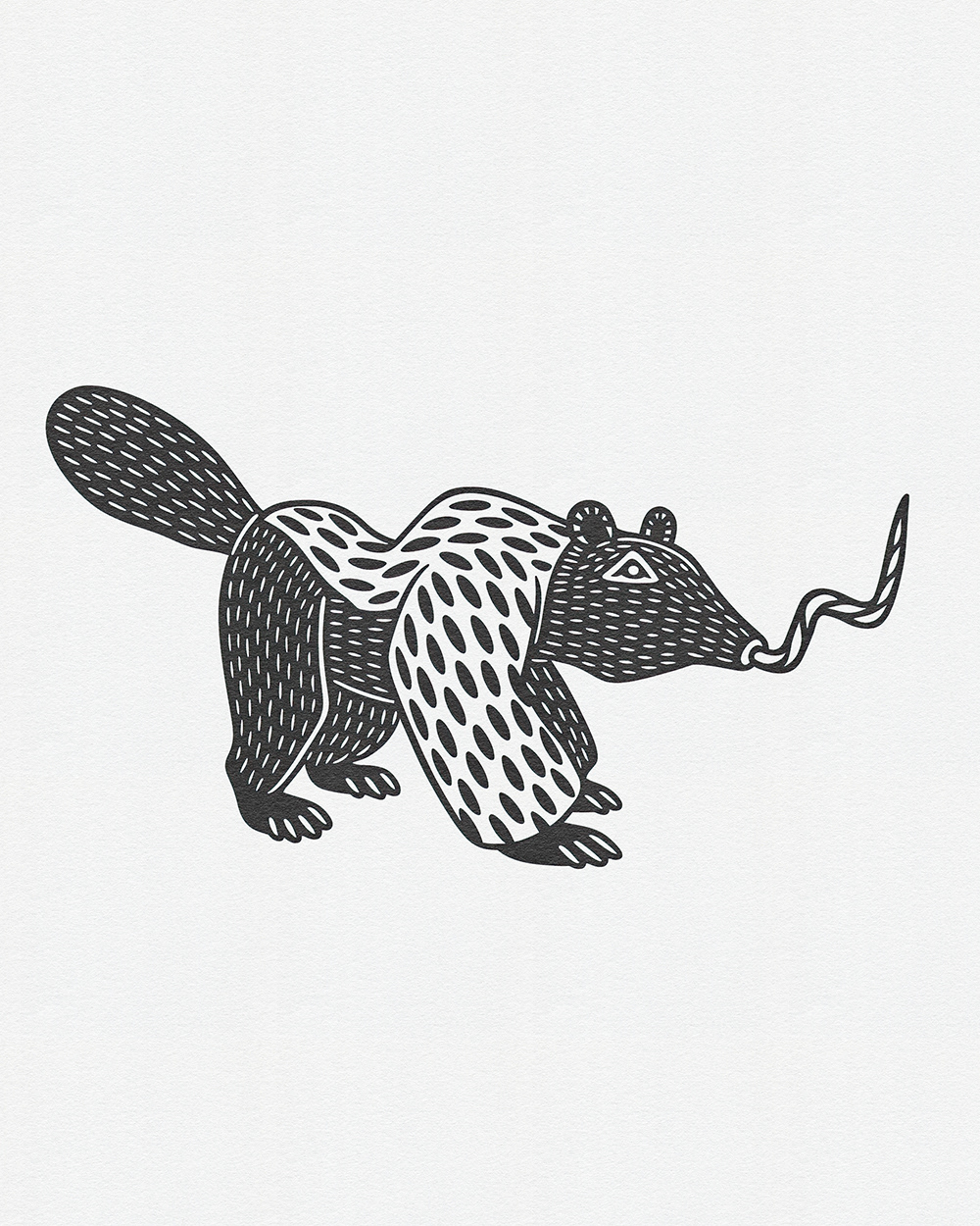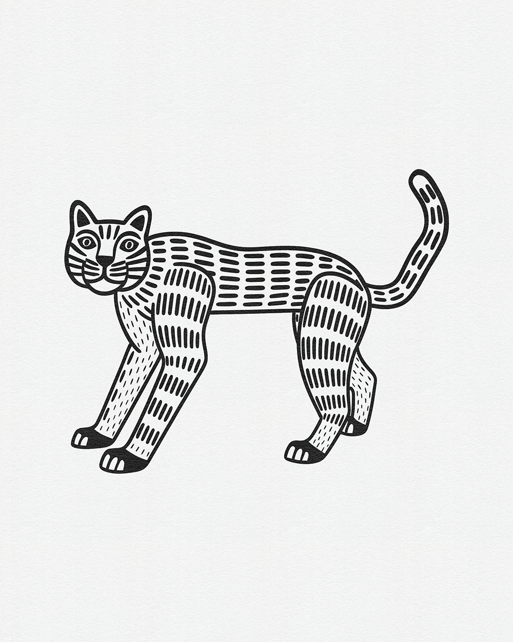 Whimsical Beasts: Bold Black and White Folk-Inspired Animal Illustrations