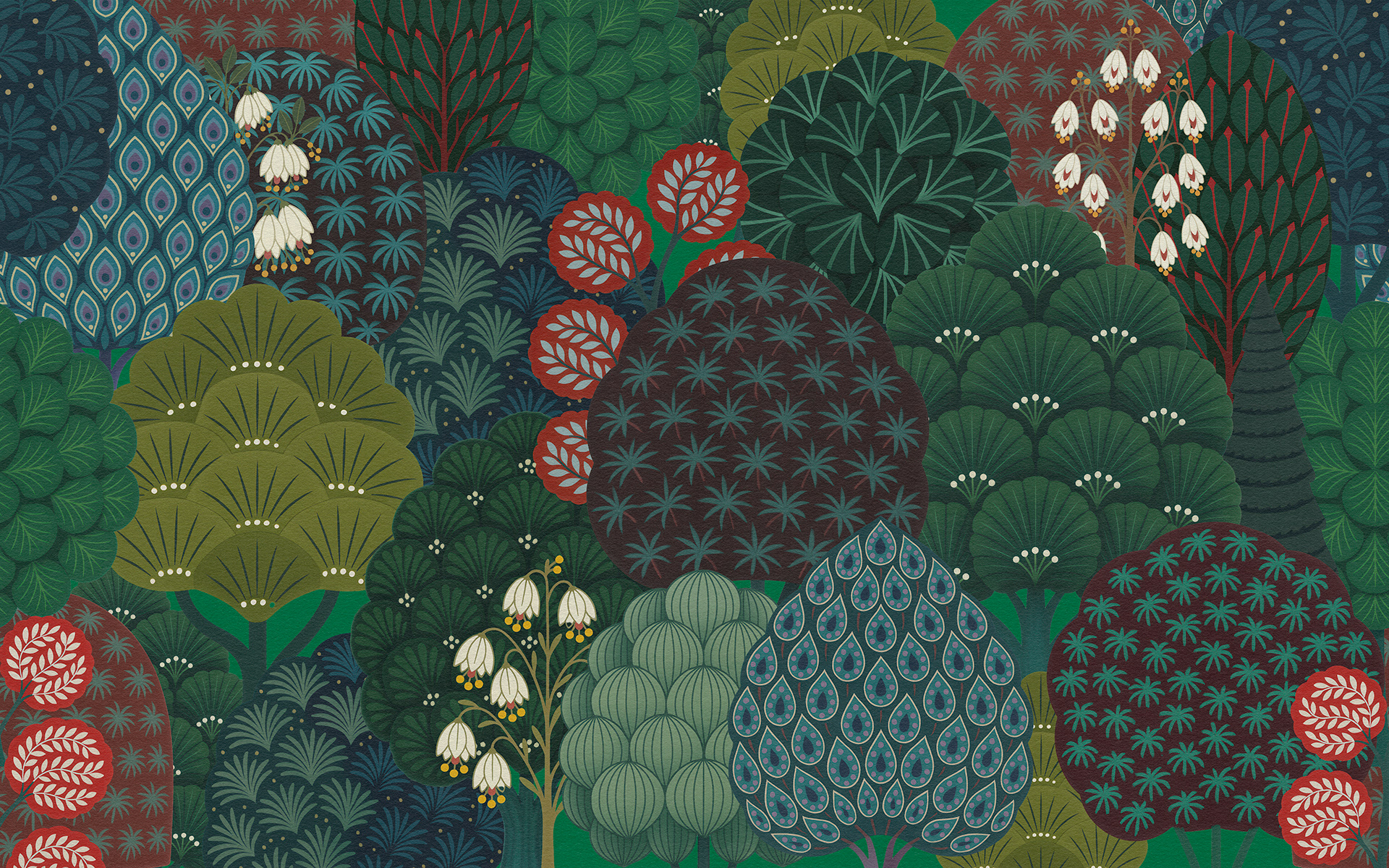 A mesmerizing art series of stylized forest trees, this intricate pattern evokes the rhythm of nature through symmetrical foliage, vibrant palettes, and decorative detailing. Ideal for wallpapers, textiles, and interior design.