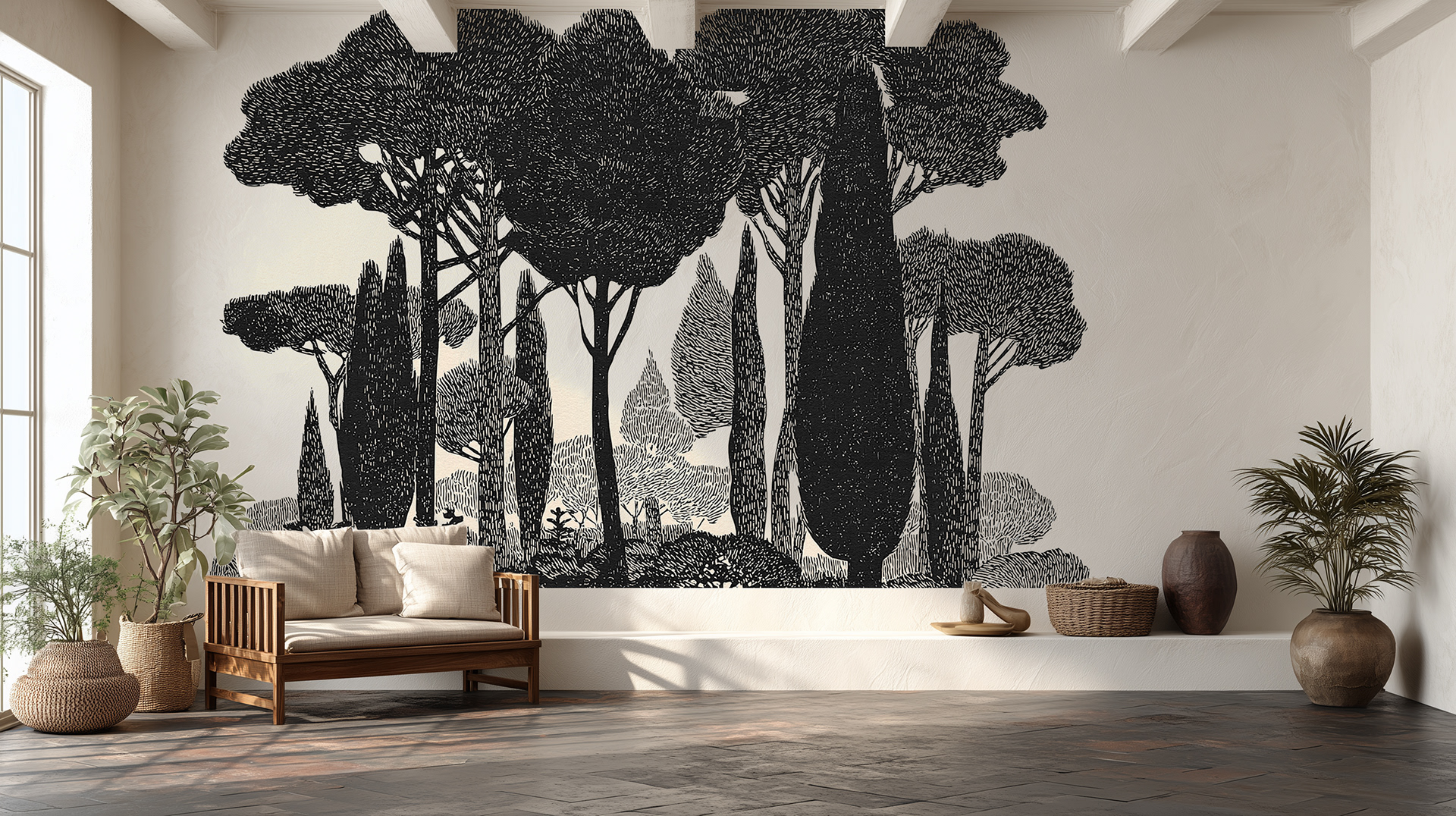 Whispers of the Cypress Grove presents a serene black-and-white landscape series celebrating Mediterranean trees and timeless silhouettes. Each artwork harmonizes light, form, and shadow, evoking meditative beauty and classical natural symmetry.