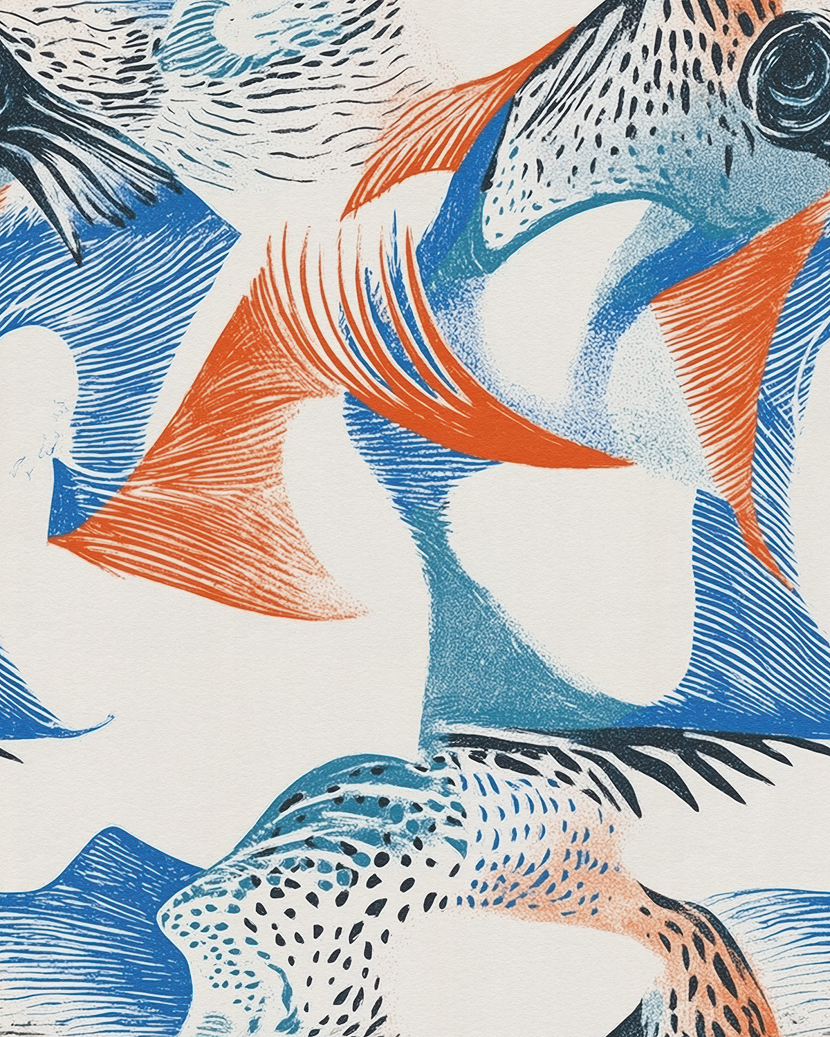 Wild Rhythm transforms animal silhouettes and organic movement into bold, modern seamless surface designs. Dynamic line textures and high-contrast color accents create energetic repeat patterns suited for textiles, wallpaper, and contemporary decorative applications.