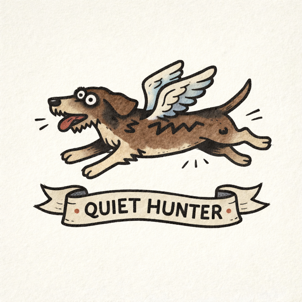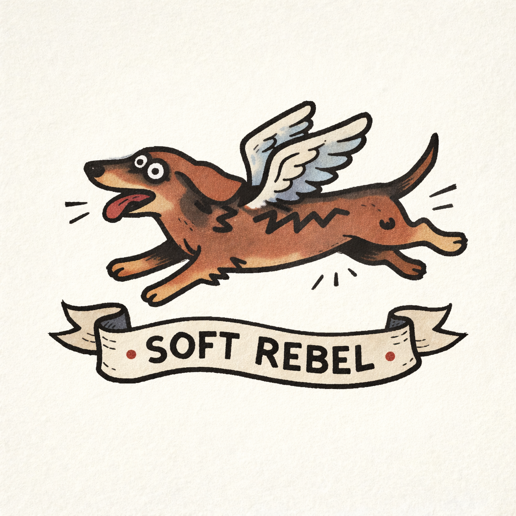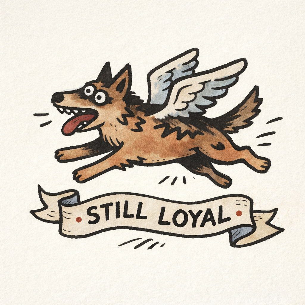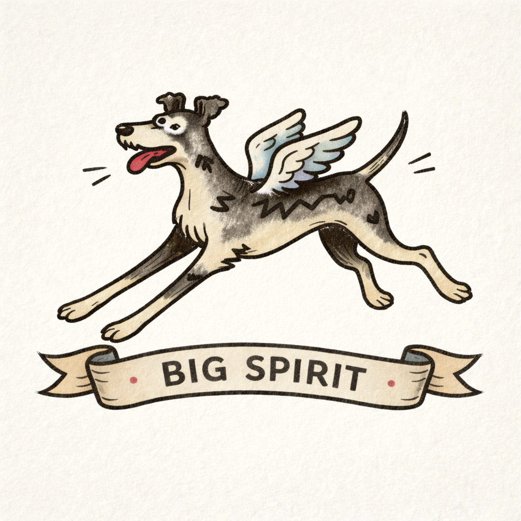 A charming illustrated dog series featuring playful winged breeds paired with bold personality phrases. Vintage-inspired linework meets modern character design, celebrating loyalty, courage, and spirited canine energy.